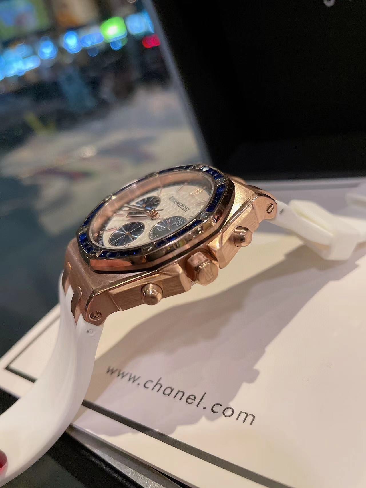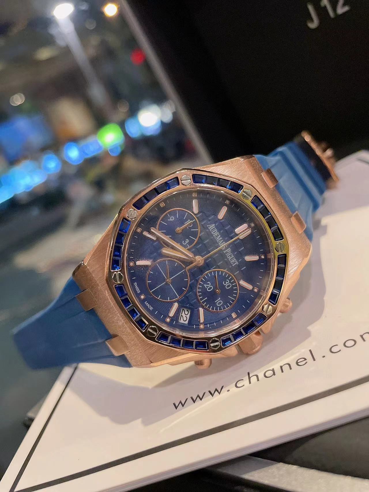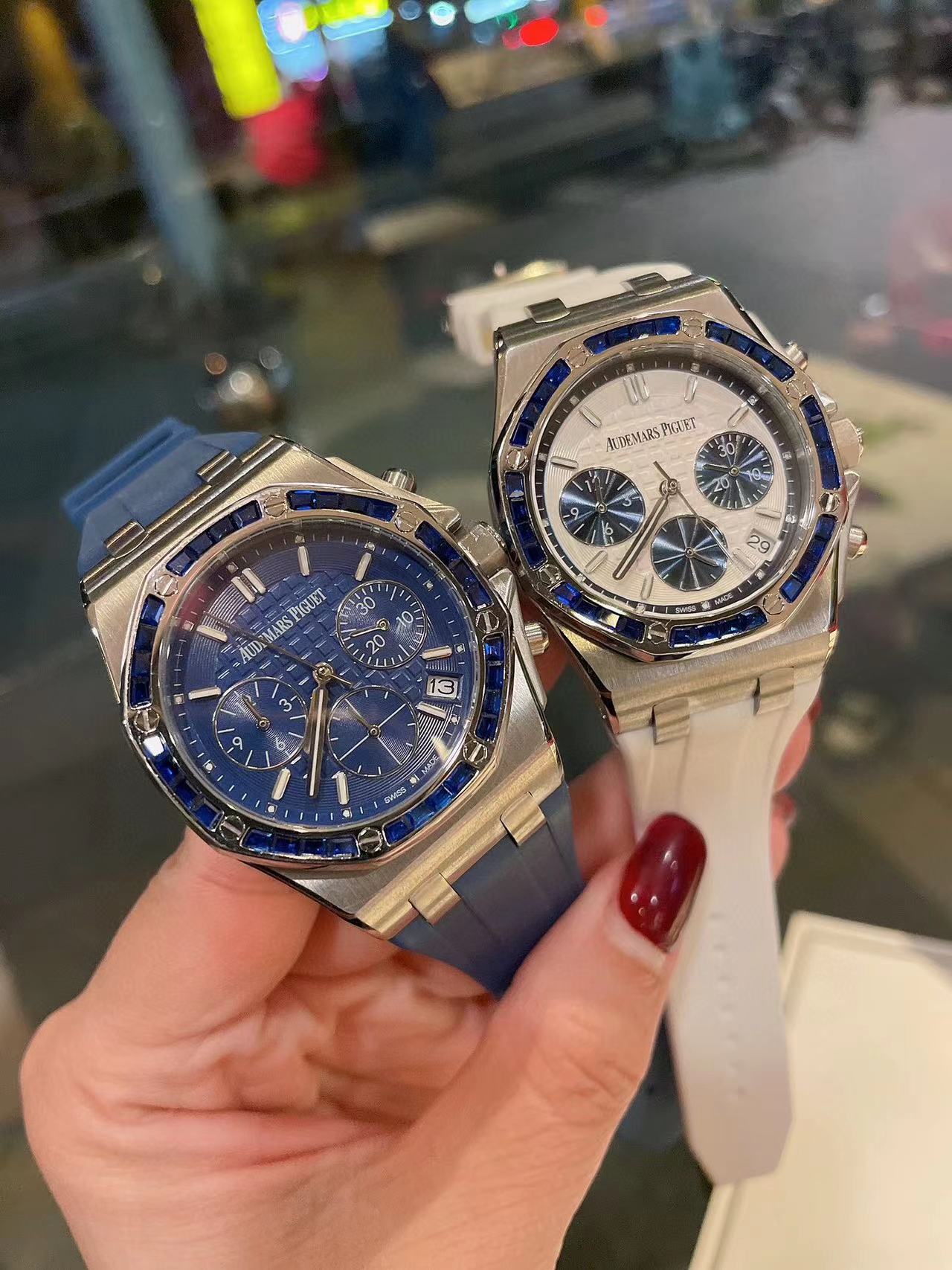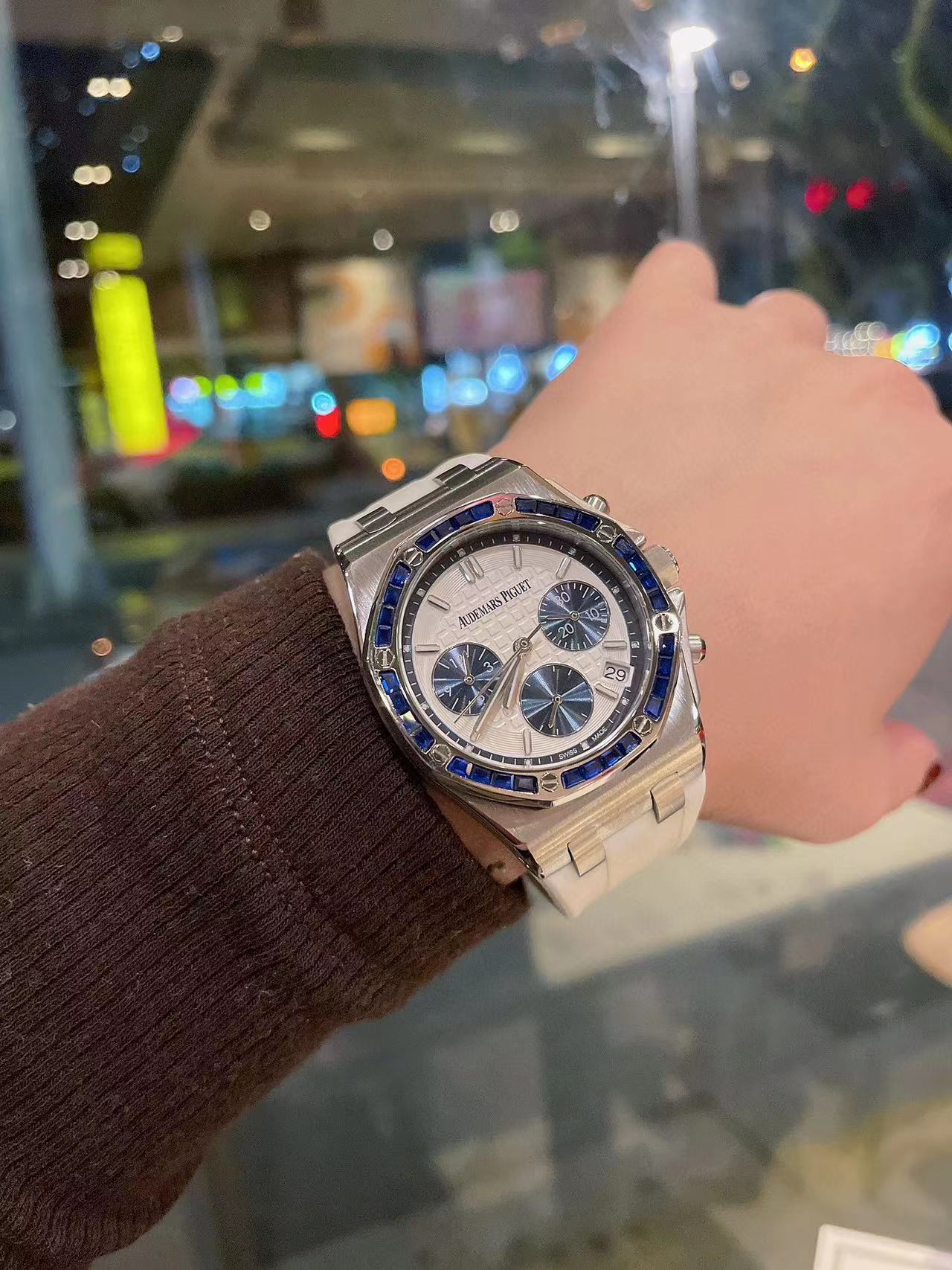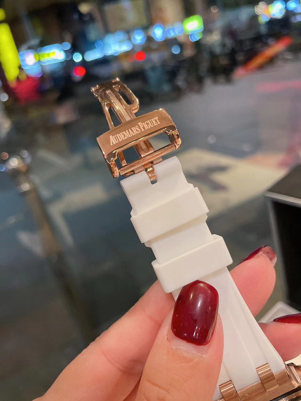 これは、ユニークなオーデマ ピゲのスピリットを備えた時計です. 新しい 37 mm の女性用時計は、ルールを破り、まばゆい T 字型のダイヤモンドがはめ込まれています. オークポインター、サファイアアンチスクラッチミラー、AP レタリングが付いたユニークなオリジナルの折りたたみ時計 💯それは単にファッションの具現化、クールで絶妙💕姉妹アレンジ✔️‼