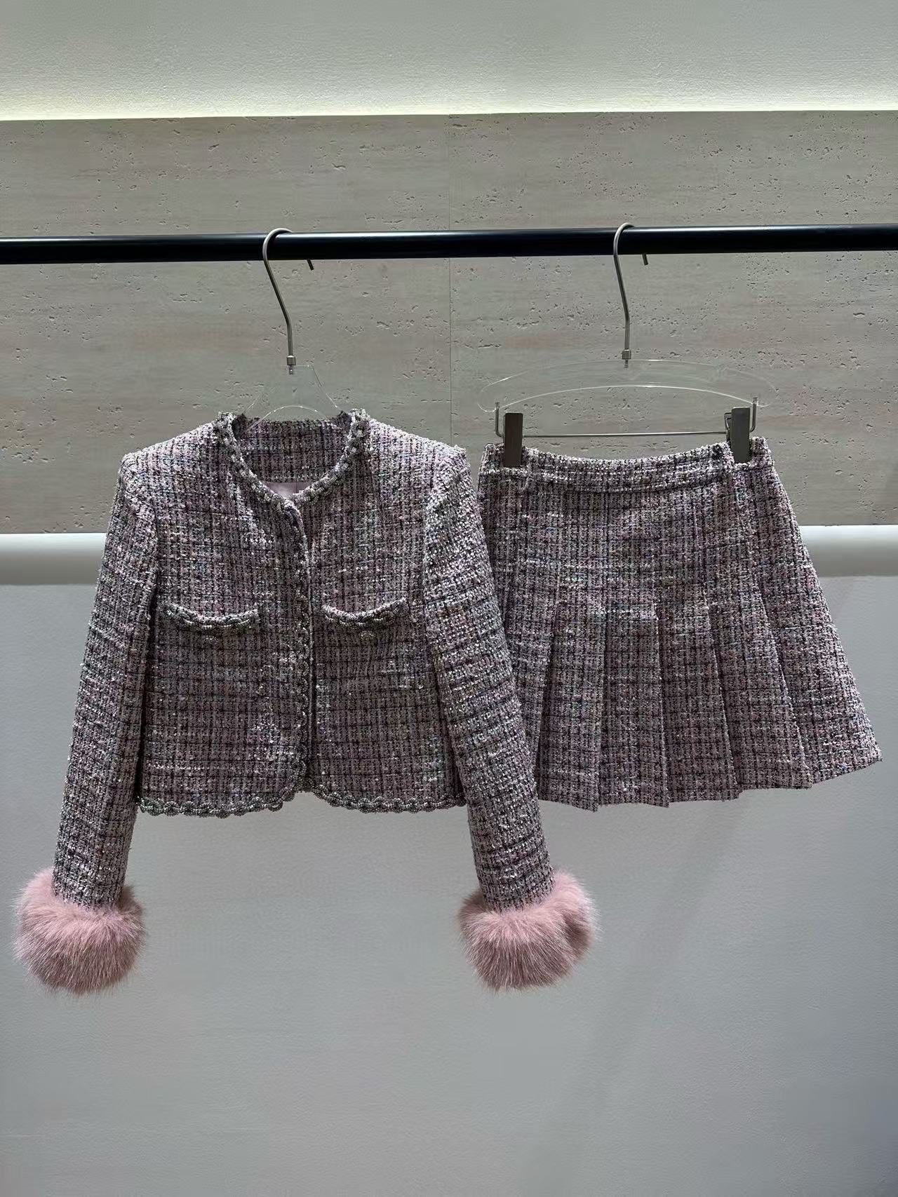 CHANE1 高級ツイードジャケット+スカート ツーピースセット【50%割引+送料無料】