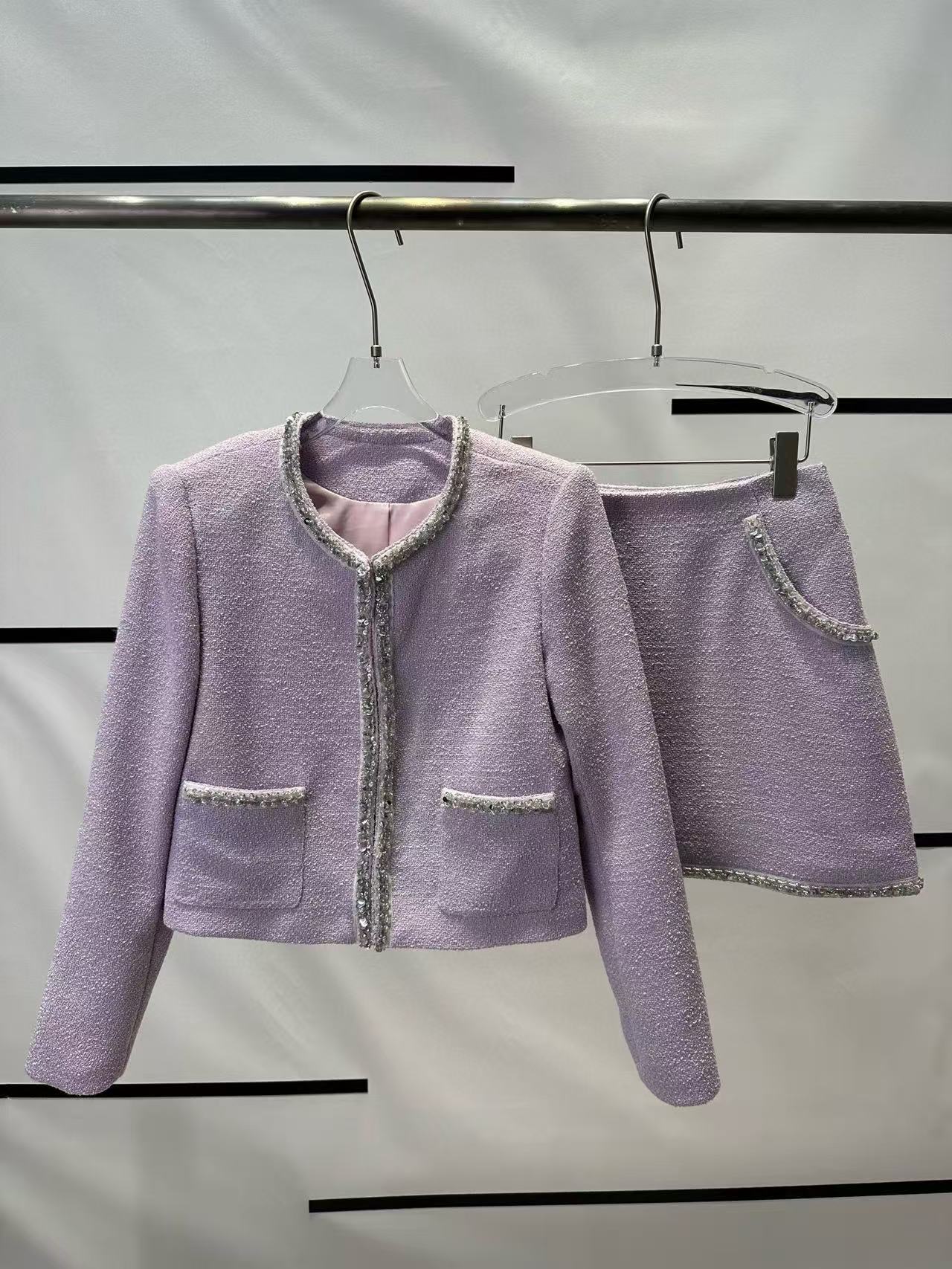 CHANE1 高品質ビーズエッジジャケット+スカート ツーピースセット【50%割引+送料無料】