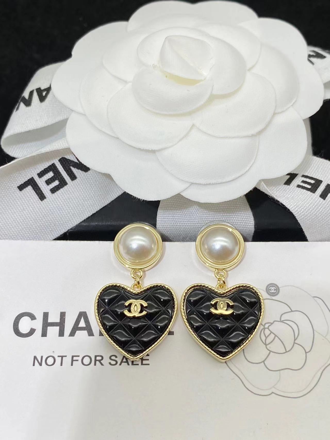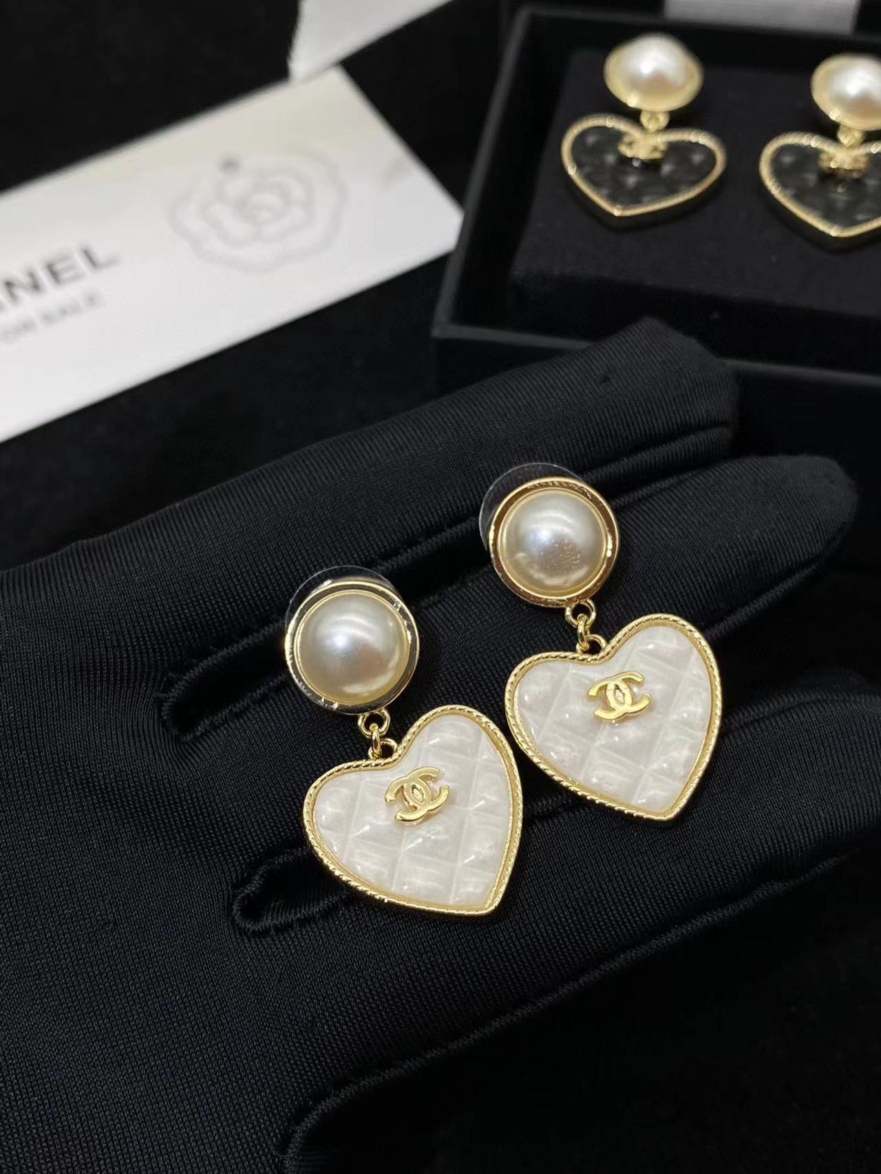 【CHANE1】黒と白のハートのイヤリング【50%割引+送料無料】