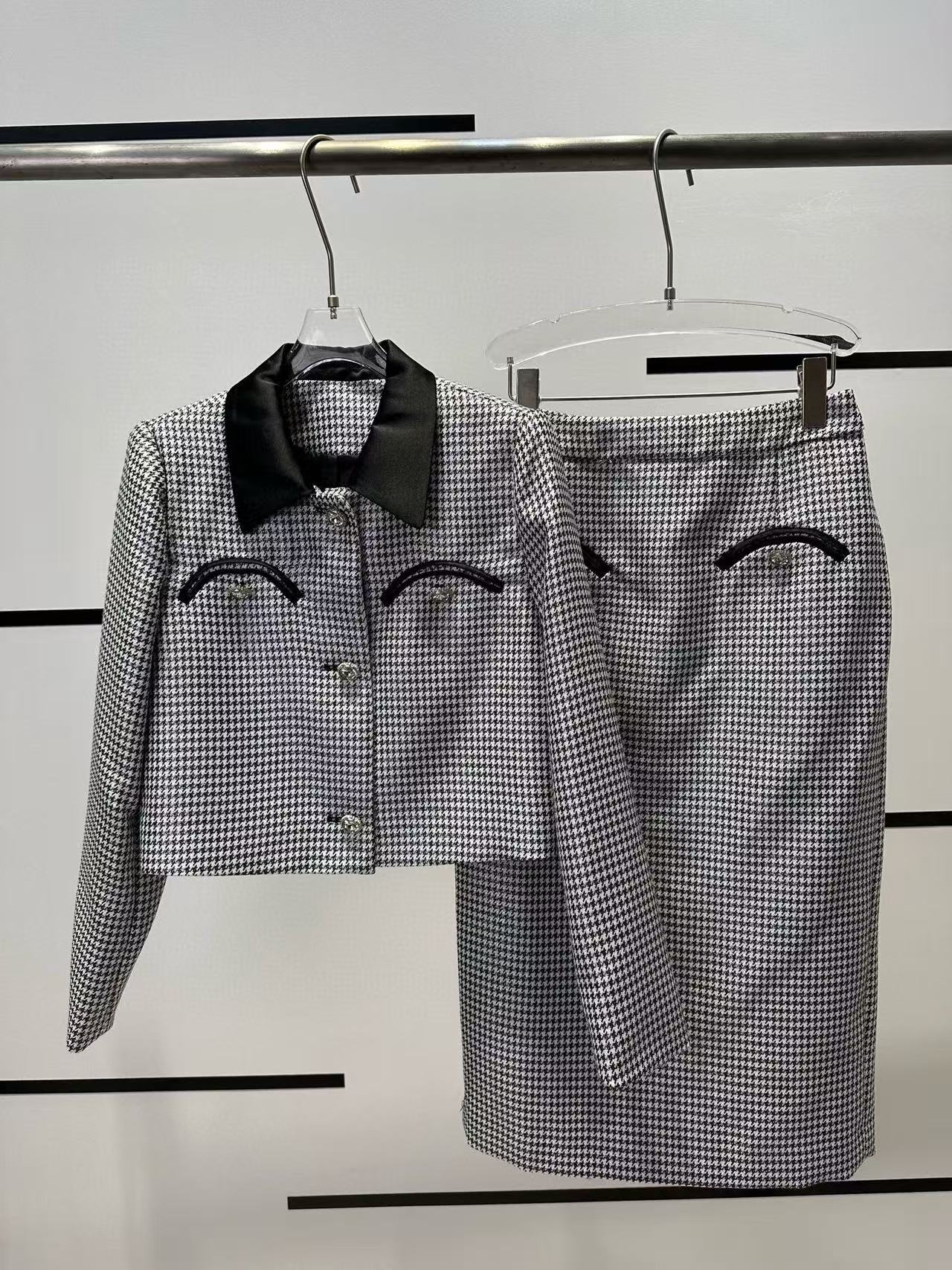 CHANE1 上質な千鳥格子コート+スカートのツーピースセット【50%割引+送料無料】