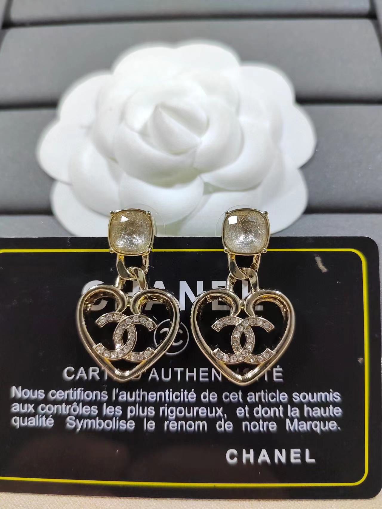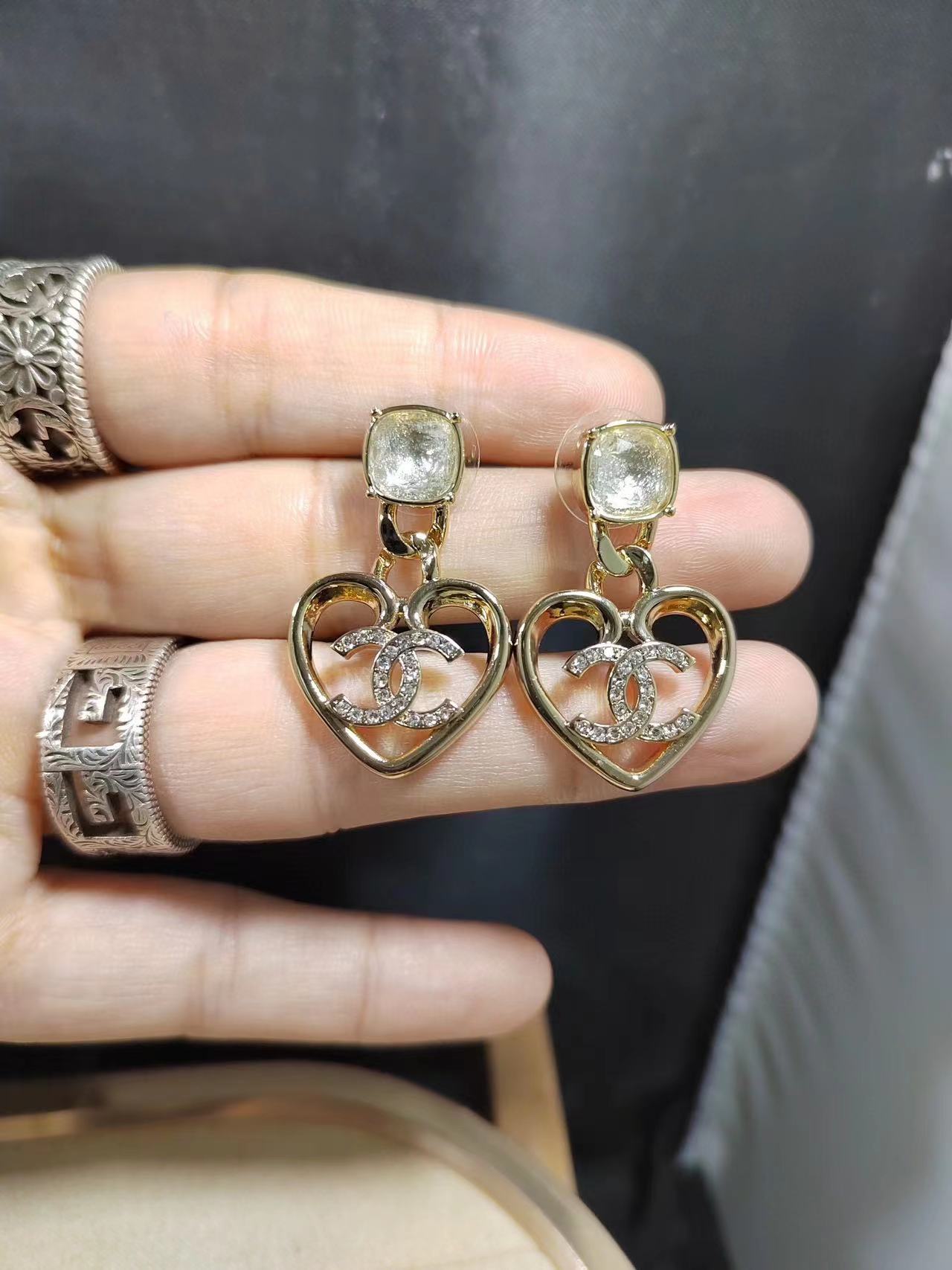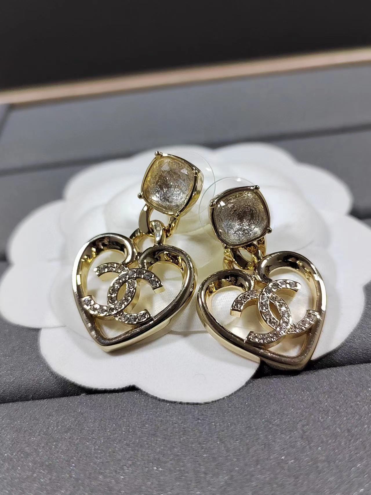 【CHANE1】ダブル C ハート ダイヤモンド イヤリング【50%割引+送料無料】