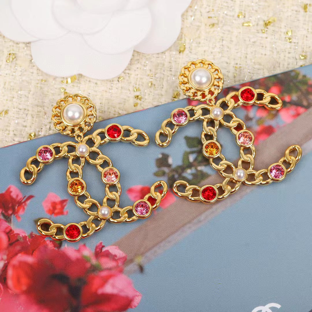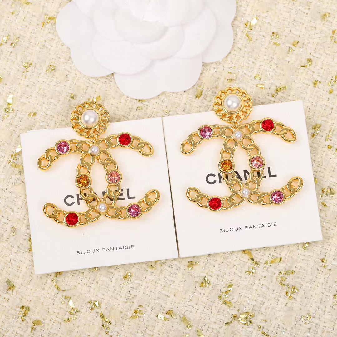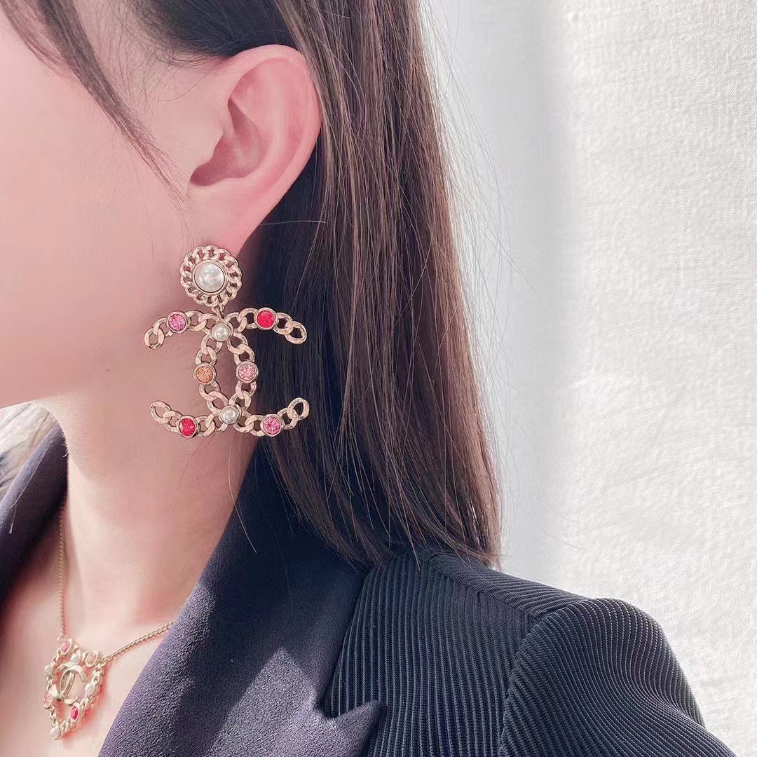 【CHANE1 】ダブルC カラーダイヤモンド ピアス【50%割引+送料無料】