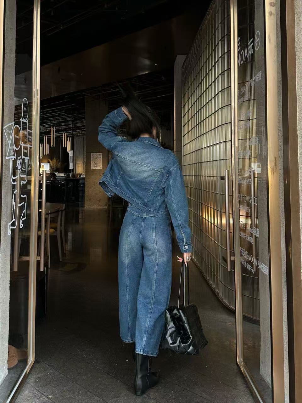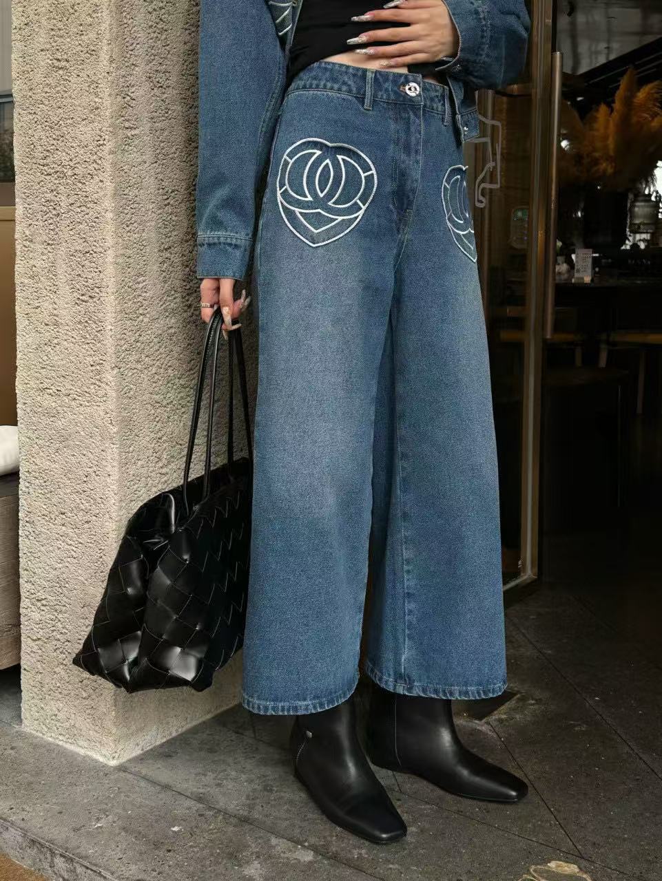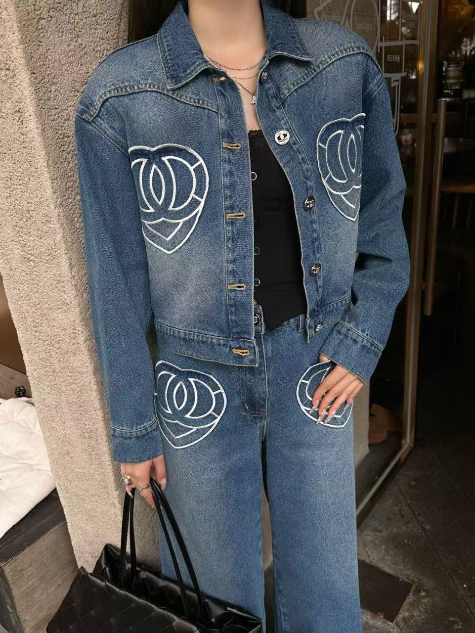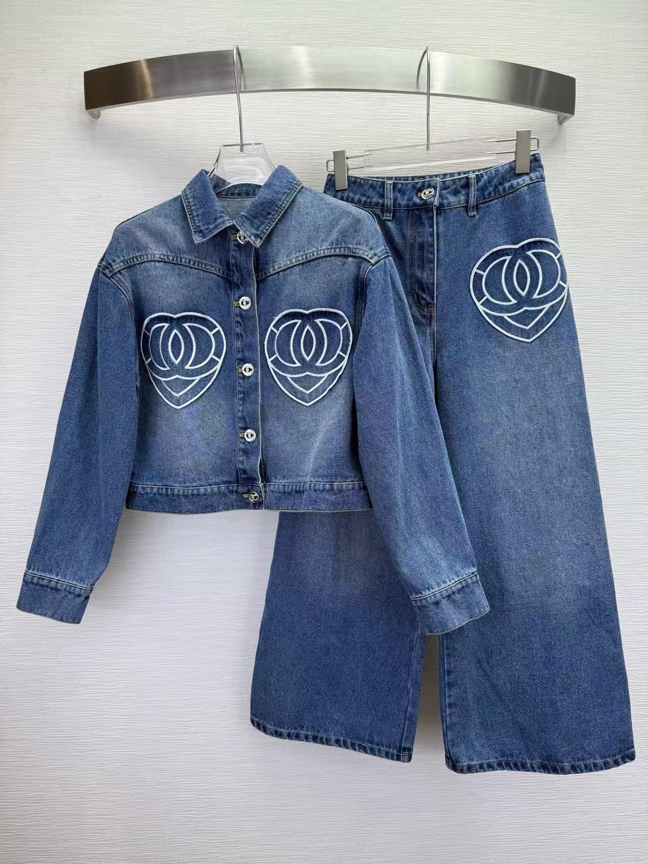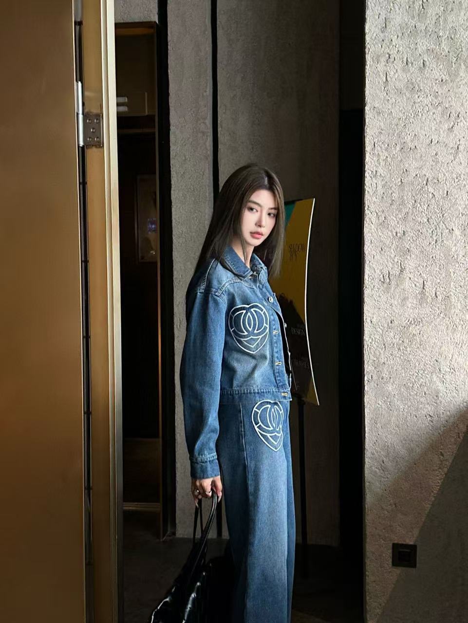 CHANE1 ダブルC ピーチハート デニムジャケット+パンツ ツーピースセット【50%割引+送料無料】