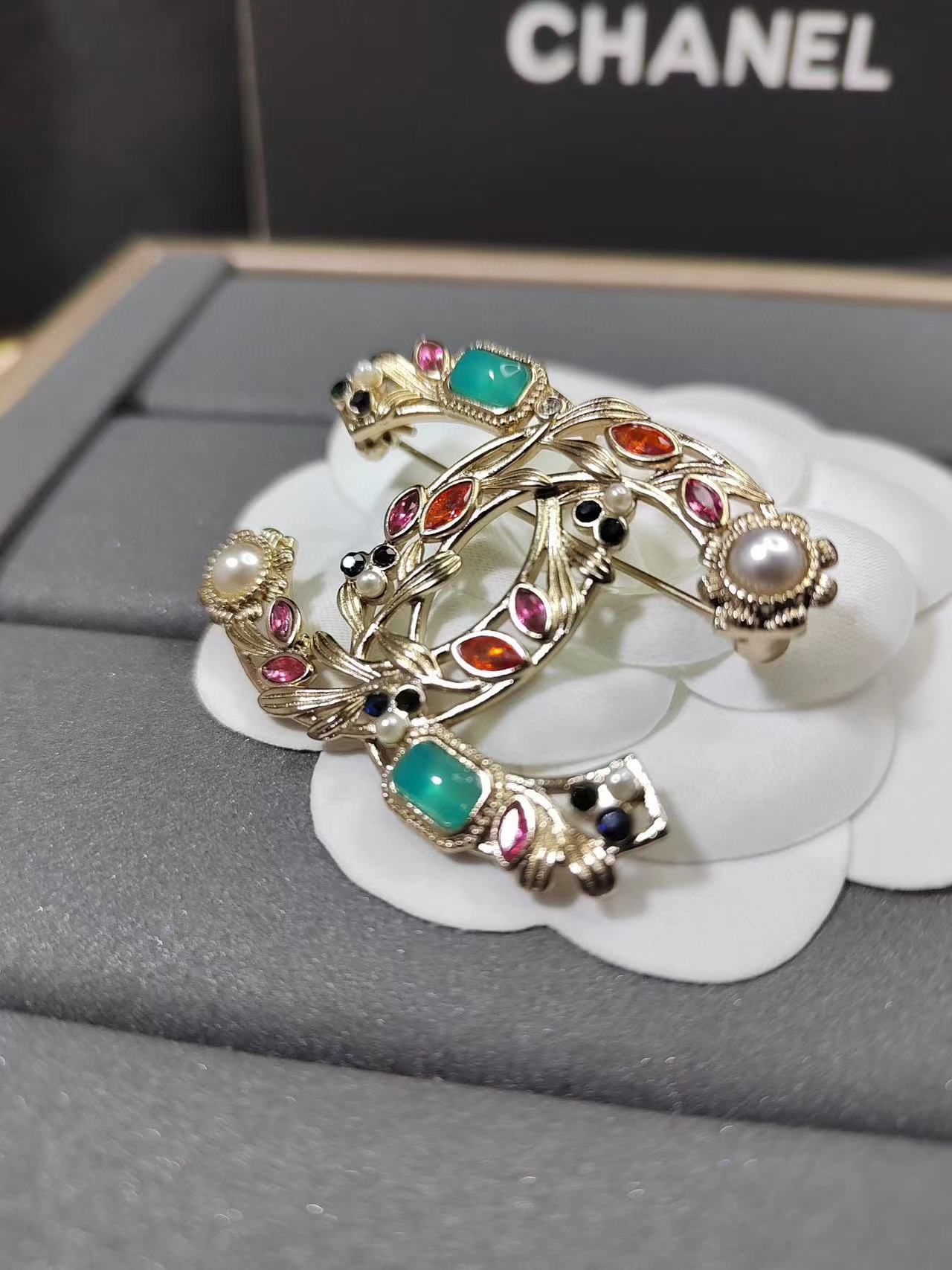 【CHANE1】ダブル C パールとダイヤモンドのブローチ【50%割引+送料無料】