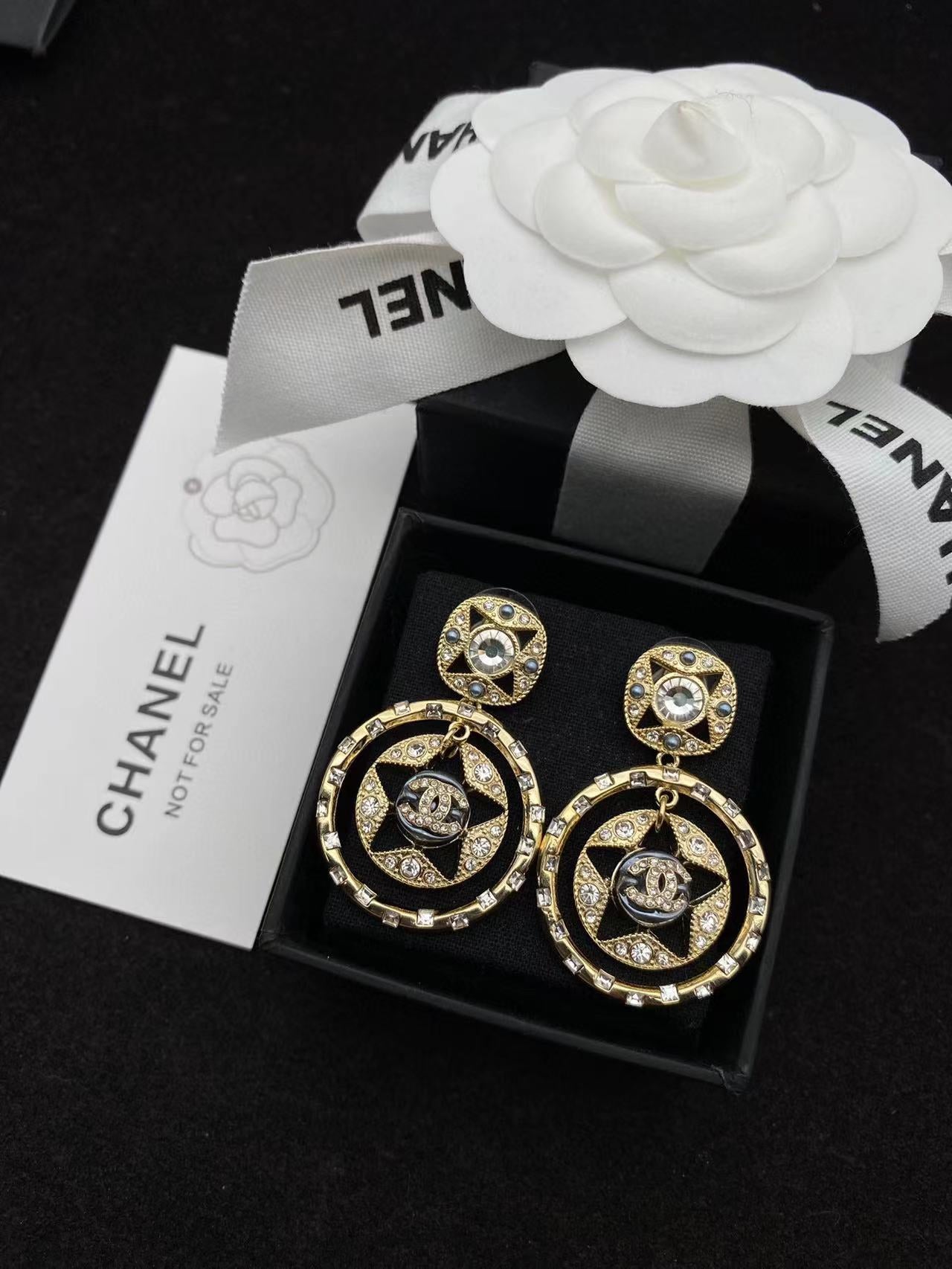 【CHANE1】CC ペンタグラム ダイヤモンド イヤリング【50%割引+送料無料】