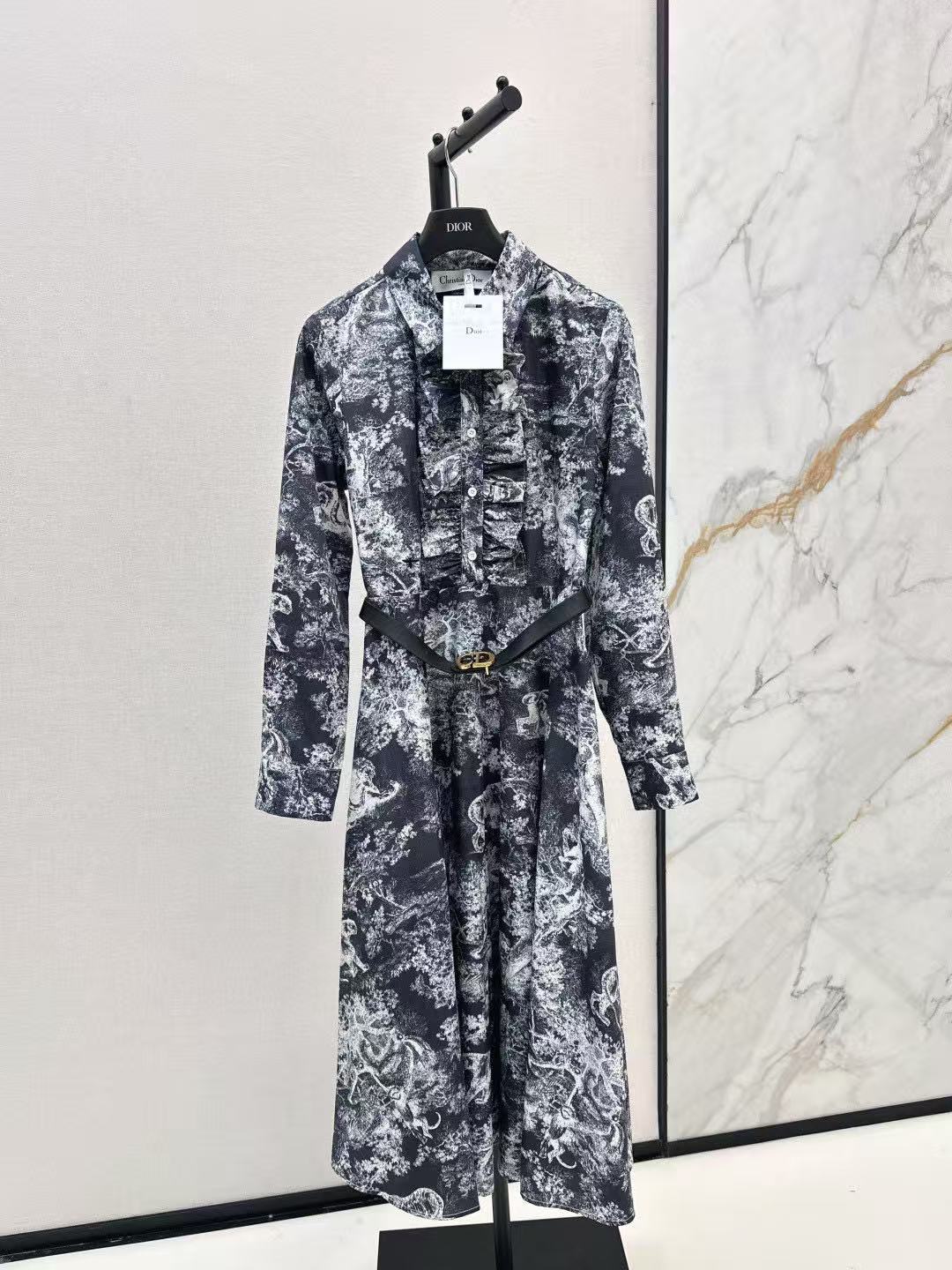 DI0R フリルプリントドレス【50%割引+送料無料】